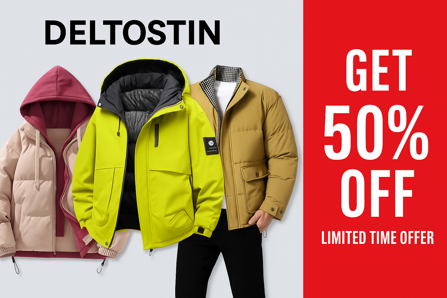 Deltostin Men’s Dual-Layer Fleece-Lined Winter Jacket – Beige Hooded Thermal Puffer Coat